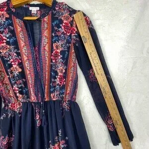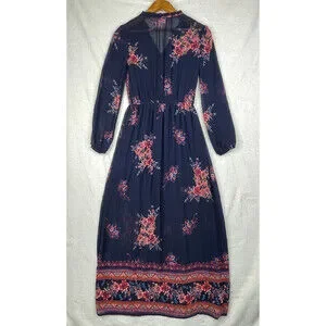 Xhilaration Floral Maxi Dress Womens XS Blue Boho CottageCore Long Sleeves