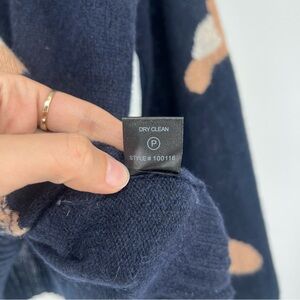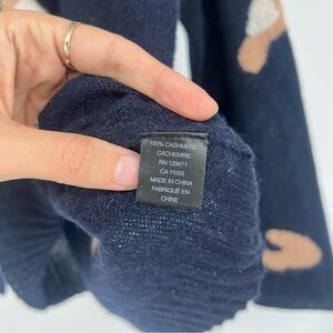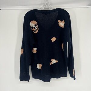 Skull Cashmere 100% Cashmere Navy Leopard Lightweight Knit V Neck Sweater Small