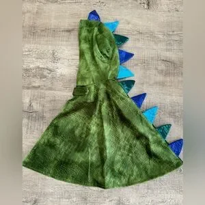 Transform your child into a playful dinosaur with this vibrant green costume featuring blue spikes. Perfect for seasonal fun and imaginative play.