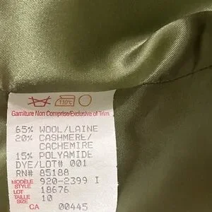 Vintage MAINBOCHER apple green open front cashmere & wool jacket, with coordinating green silky lining, and notched sleeve cuffs. Perfect for any occasion, it offers both comfort and elegance. Size 10. 65% wool, 20% cashmere, 15% polyamide.