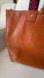 Brand new/unused. Stylish brown supple leather tote bag featuring a red and navy blue checkered strap. Lined in chambray. Perfect for everyday use!