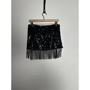 Reformation Black Martina Showgirl Sequin Mini Beaded Fringe Womens Skirt Size 2