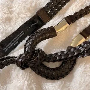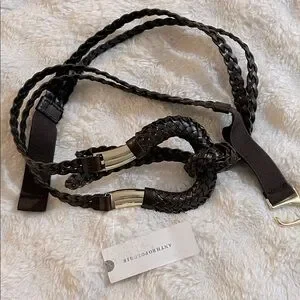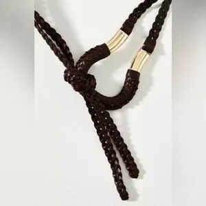 NWT Anthropologie Woven Skinny Belt in Chocolate Brown & Gold size XL