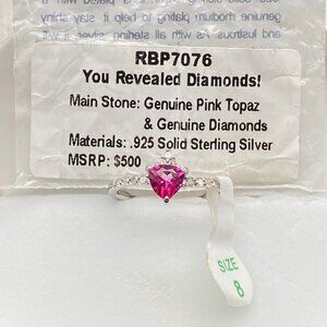 Genuine Pink Topaz & Genuine Diamond on .925 Sterling Silver Ring Size 8