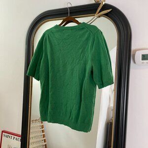 100% cashmere knit top with small hole in the front, which is noted in the photos. priced lower because of the hole. super soft top that's perfect for this fall. would love to wear it layered with a white button up shirt underneath