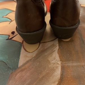 Brads also on finger holes at top of boot. Some minor scuffs on toes but can be polished out. Size 8 1/2. Interior is roughed out design. Low cowboy heel with spur rest. Style 1007953. Last 4 pics are stock pics but show better styling.