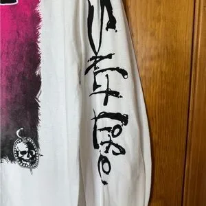Classic white long sleeve tee with pink and black graphic logo on the back. Features chest pocket and Salt Life logo. Perfect for casual wear. New with tags, size medium.