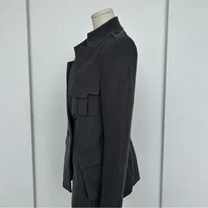 Grey Wool Blend Asymmetric Button Structured Tailored Blazer Coat