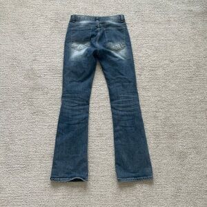Women’s Low Rise Blue Flare Bootcut Dark Wash Denim Jeans Spring Y2K Coquette