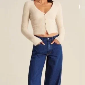 Abercrombie & Fitch Soft Eyelash Button-Down Cream Cardigan Women's Sweater Sz S