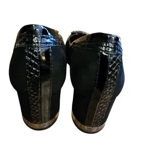 Tory Burch Women's Black Suede Heels Crocodile Embossed Trim Silver Sz 6.5 EUC