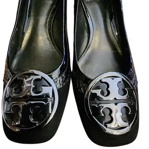 These Tory Burch Women's Black Suede Heels are a stylish and versatile addition to any woman's wardrobe. The crocodile embossed trim and silver accents add a touch of sophistication, while the square toe and mid heel make them comfortable for all-day wear. The slip-on style and suede upper material ensure a perfect fit and quality construction. Perfect for summer, fall, or spring, these heels are a must-have for any fashion-forward woman looking to elevate her outfit with a classic yet trendy pump.