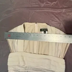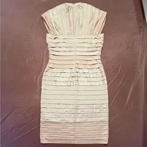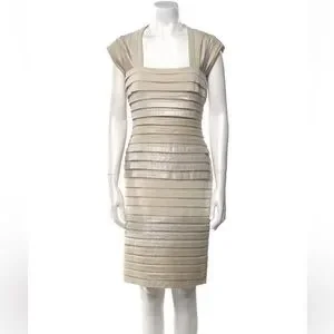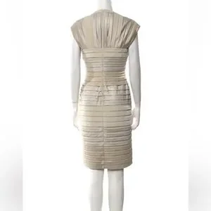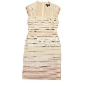 Tadashi Shoji Cap Sleeve Gold/Cream Shutter Pleat Ombre Midi Dress Medium $295