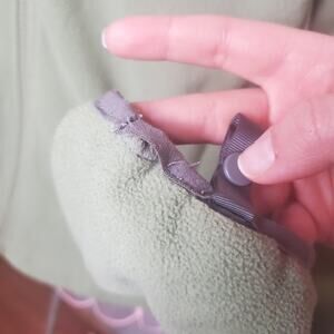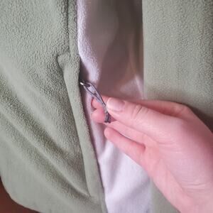 The North Face Fleece Full Zip Up Jacket in pretty light green / sage color with white side and grey lining to collar.