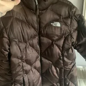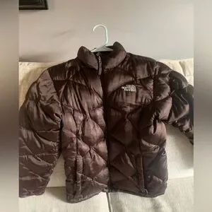 Girls size XL north face puffer coat in a beautiful brown color. Fits like a woman’s small or women’s xs. Good condition, washed it on gentle cycle and air dry it right before posted. May be 1 or 2 small oil stains on the arms but not noticeable. Posting in in women’s size xs.