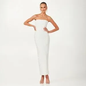 NWT Helsi Leslie Strapless Sequin Midi Dress White - Size Small -Retails $395