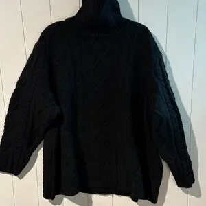 Eddie Bauer wool blend black cAble knit turtleneck boxy fit 4X