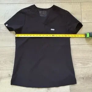 Sleek black scrub top from Figs. Part of the Technical Collection. Pants are straight leg fit size XS tall Top is size XS