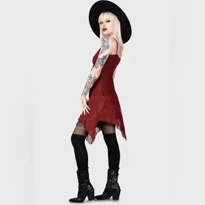 Goth glam meets tropical getaway 🌺🖤. This stunning Killstar “Emilia’s Wrath” dress in bold red was worn once on a trip to Hawaii and has been kept in the closet since. Flowy, dramatic, and flattering, it’s perfect for making a statement on date nights, parties, or spooky-chic everyday wear.