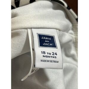 The Janie and Jack toddler one piece swimsuit in black and white geometric print is a stylish and comfortable option for young girls aged 18-24 months. This high-quality swimwear is perfect for your little one to wear while playing in the pool or at the beach, ensuring they stay safe and stylish in the water. The iconic Janie and Jack brand and classic color scheme make this swimsuit a timeless addition to any baby's wardrobe.
