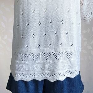 Vintage 60s College Point Pointelle Sweater Top Scallop Knit Short Sleeve Cream