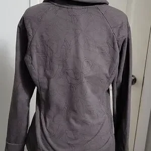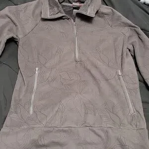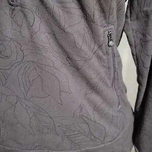 size Large pullover with fleece inside and a black floral-ish design on the outside by The North Face. Has two zipper pockets.
