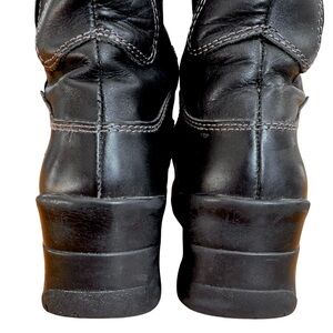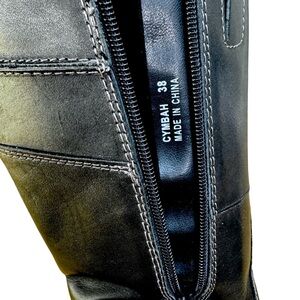 ‘Show-stopping’ Aldo Black Leather Boots with beautiful stitching details. Zipper closure. Rubber block heel. Worn but in very good condition, only the inside foot bed and outside soles are worn. They’re cleaned, polished and protected. Been taken very good care of, still a lot of life left! Got so many compliments wearing them!