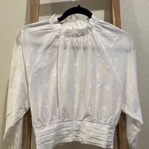 Anthropologie Maeve White Ruched 3/4 Sleeve Crop Blouse