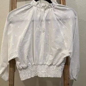Discover the elegance of the Anthropologie White Ruched 3/4 Sleeve Blouse, a perfect blend of style and comfort. This blouse features a sophisticated ruched and smocked design, adding a touch of texture and flair to your ensemble. Crafted with attention to detail, it offers a chic and versatile option for any occasion. 18”L 17”pit to pit 339