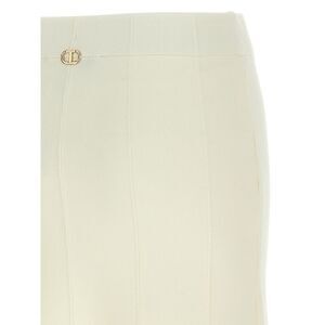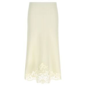 Longuette viscose knit skirt with shaved pattern, slightly flared silhouette, metal 'Oval T' logo plaque at the back, elastic waistband, scalloped hem with ramage embroidered organza insert.