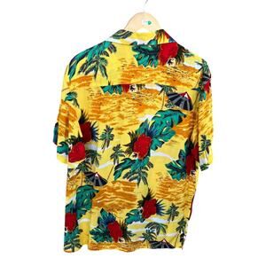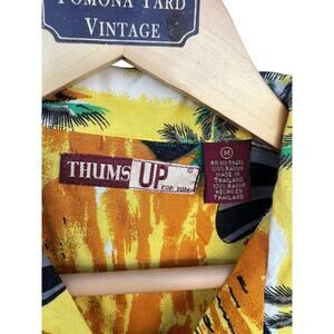 Thums Up Vintage 90s Men's Hawaiian Shirt Bright Yellow Floral Palm Size Medium