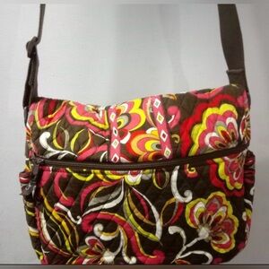 EUC Vera Bradley Laptop Messenger Crossbody Bag, Color Red, Brown, Yellow,