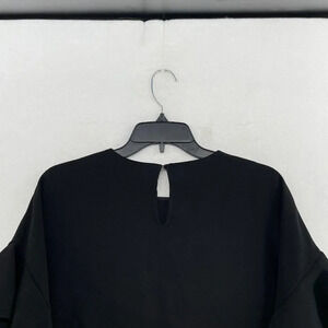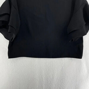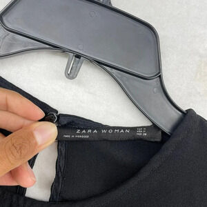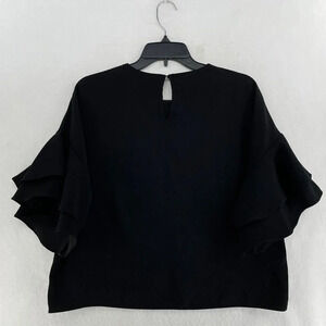 Zara Woman Blouse Women's M Black Ruffle Half Sleeves Round Neck Keyhole Back