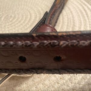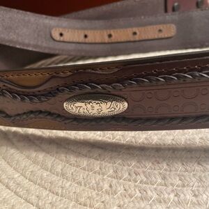 Men's Brown Leather Western Style Belt with Silver Buckle