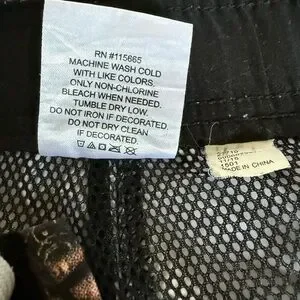 These Star Wars Swim Trunks in size 2XL feature a fun comic strip all-over print, perfect for any Star Wars fan. Made from 100% polyester with a mesh lining, they are machine washable for easy care. The multicolor design and drawstring swim bottom style make them a stylish and functional choice for swimming and surfing activities. Show off your love for the Star Wars universe with these cool and comfortable swim trunks. 20 inches across at the waist, 12 inch rise, 10 inch inseam, 21 inches from top to bottom. From a smoke free home, however I do have pets. L