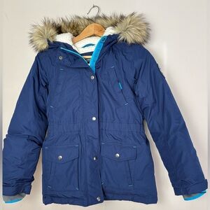 Lands' End Dark Blue Expedition Parka with Faux Fur Trim Sherpa Lining