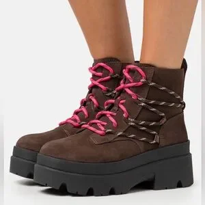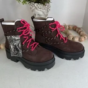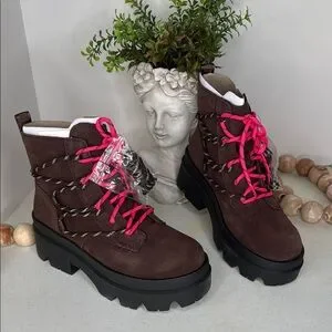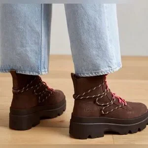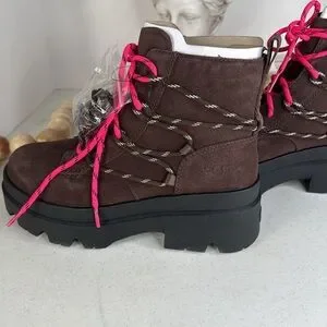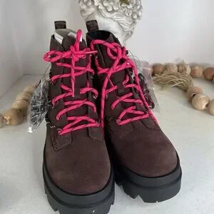 UGG Brisbane Lace Up Suede Platform Boots Size 9 Burnt Cedar NWOB