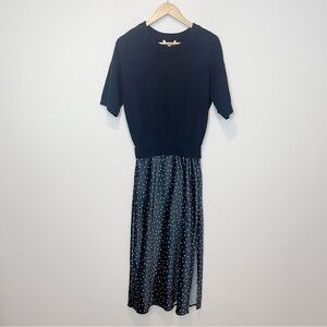 Evereve Polkadot Dress Sweater Top Satin Skirt Classic Size XS