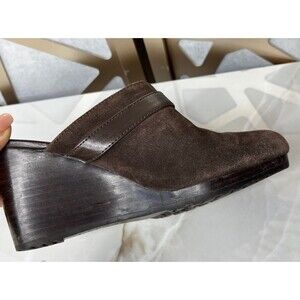 Lauren Ralph Yassinia Suede Leather Wedge Heels Mules Clogs Slip On Shoes 7 B