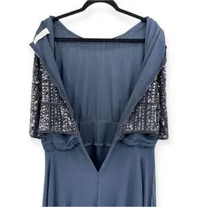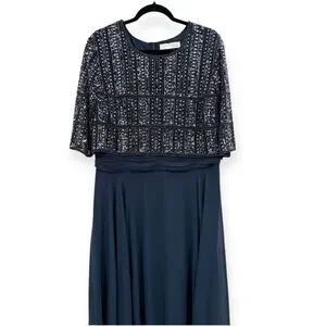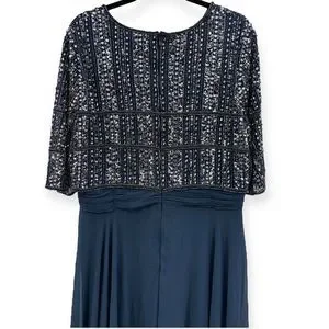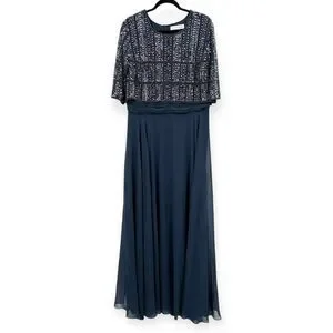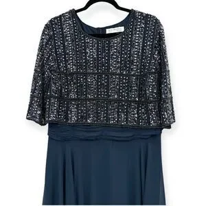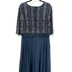 Mac Duggal NEW Chiffon Gown w/ Fully Beaded 3/4 Sleeve Top Navy $598 - Size 18