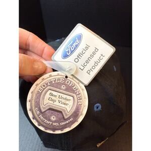 Genuine Ford Adjustable Black Mens Baseball Hat Cap w/ Bottle Cap Opener