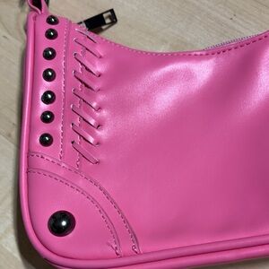 Elevate your style with this chic pink shoulder bag, featuring eye-catching stud accents and an adjustable strap for comfort. Perfect for any occasion.