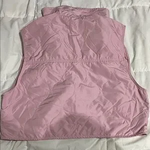 Chic light pink quilted vest. Ideal for layering. Features subtle stitching.