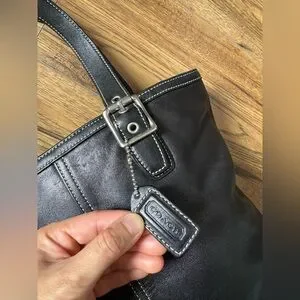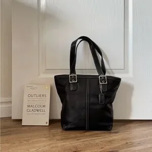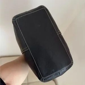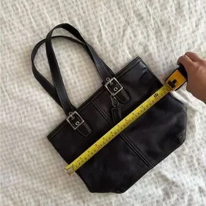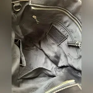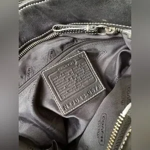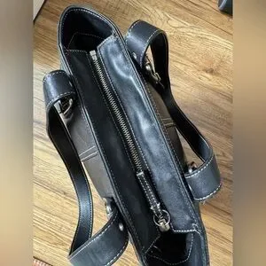 Silver hardware. J043-9572. Features an interior zip pocket and two non-zip pockets. In excellent condition. Book for scale in last photo.