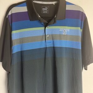 Puma Vanderbilt Golf Polo Shirt Men Large Black Blue Stripe Short Sleeve Sporty