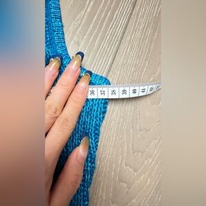 Never worn. New without tags. Shine in this stunning one-shoulder blue dress, perfect for any special occasion. Its shimmering fabric adds a touch of glamour to your look.