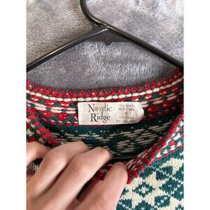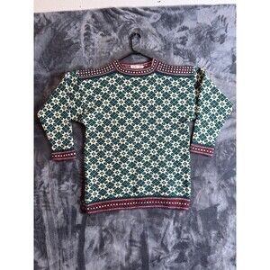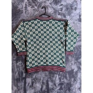 Vintage Nortic Ridge Long Sleeve Pullover Green Geometric All Over Print Knit