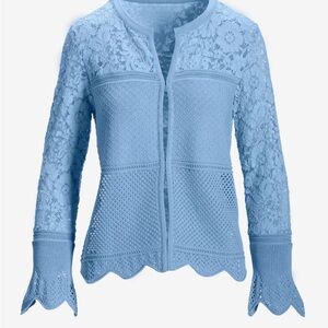 Boston Proper Light Blue Lace Cardigan