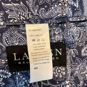 Lauren Ralph Lauren Linen Blazer Sz XL 48R Blue Classic Old Money Single Breast