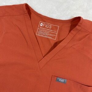 Keywords: FIGS scrub top, womens scrub top, orange scrub top, FIGS technical collection, short sleeve scrub top, healthcare apparel, medical uniform, workwear, small scrub top, FIGS, scrub top, uniform top, professional attire